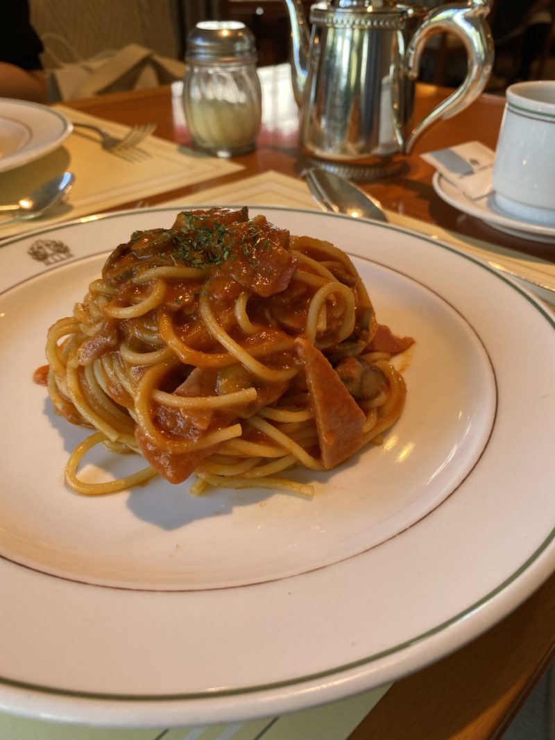戦後マッカーサーも訪れたとされるホテルニューグランドは、接収され宿舎として利用されていて、兵士が茹でたパスタに塩胡椒とケチャップで味付けして食べていたそうで、それを料理長が改良して生まれたそうです😳